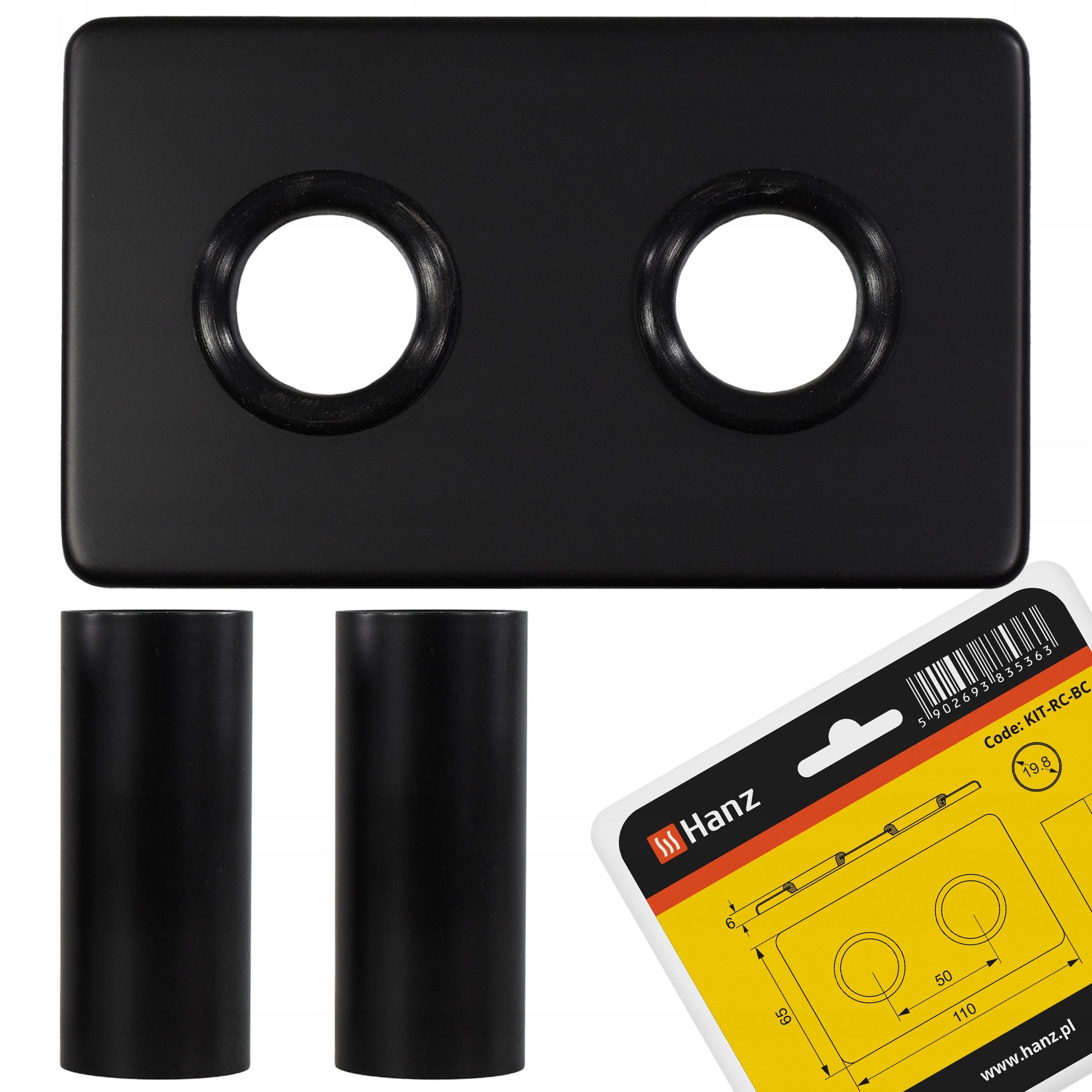 Rozeta maskująca do grzejnika czarny mat podwójna kwadratowa z tulejami HANZ