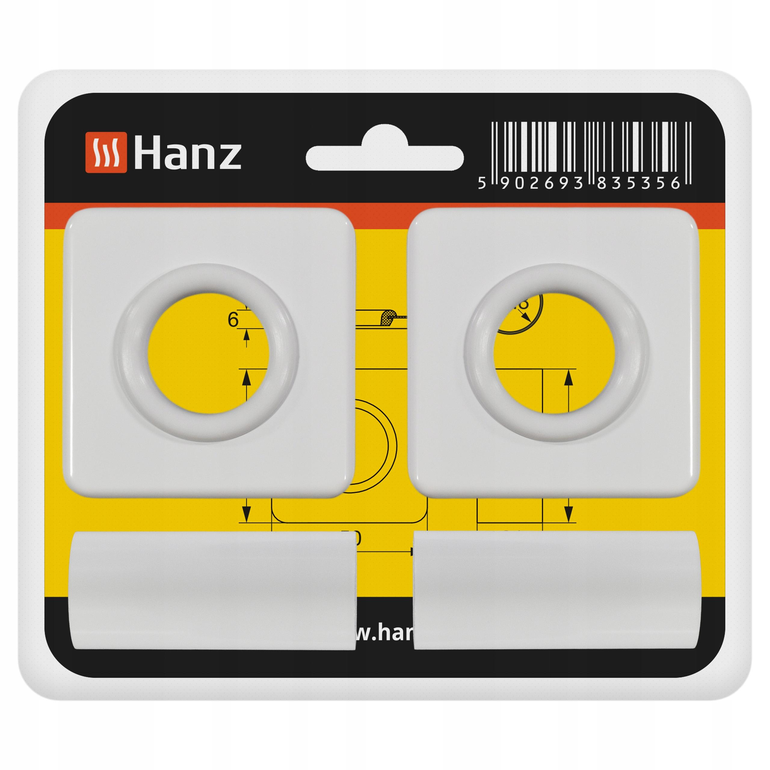 Rozeta maskująca do grzejnika biała kwadratowa pojedyncza z tulejami HANZ
