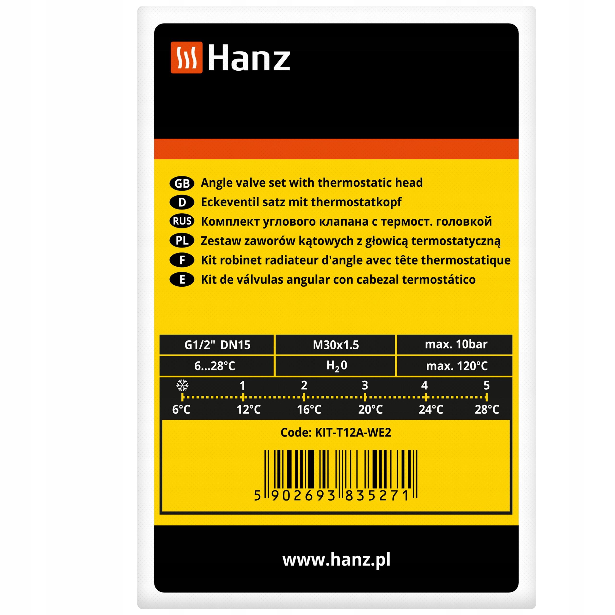 Zestaw termostatyczny kątowy biały 1/2" z głowicą No: KIT-T12A-WE2