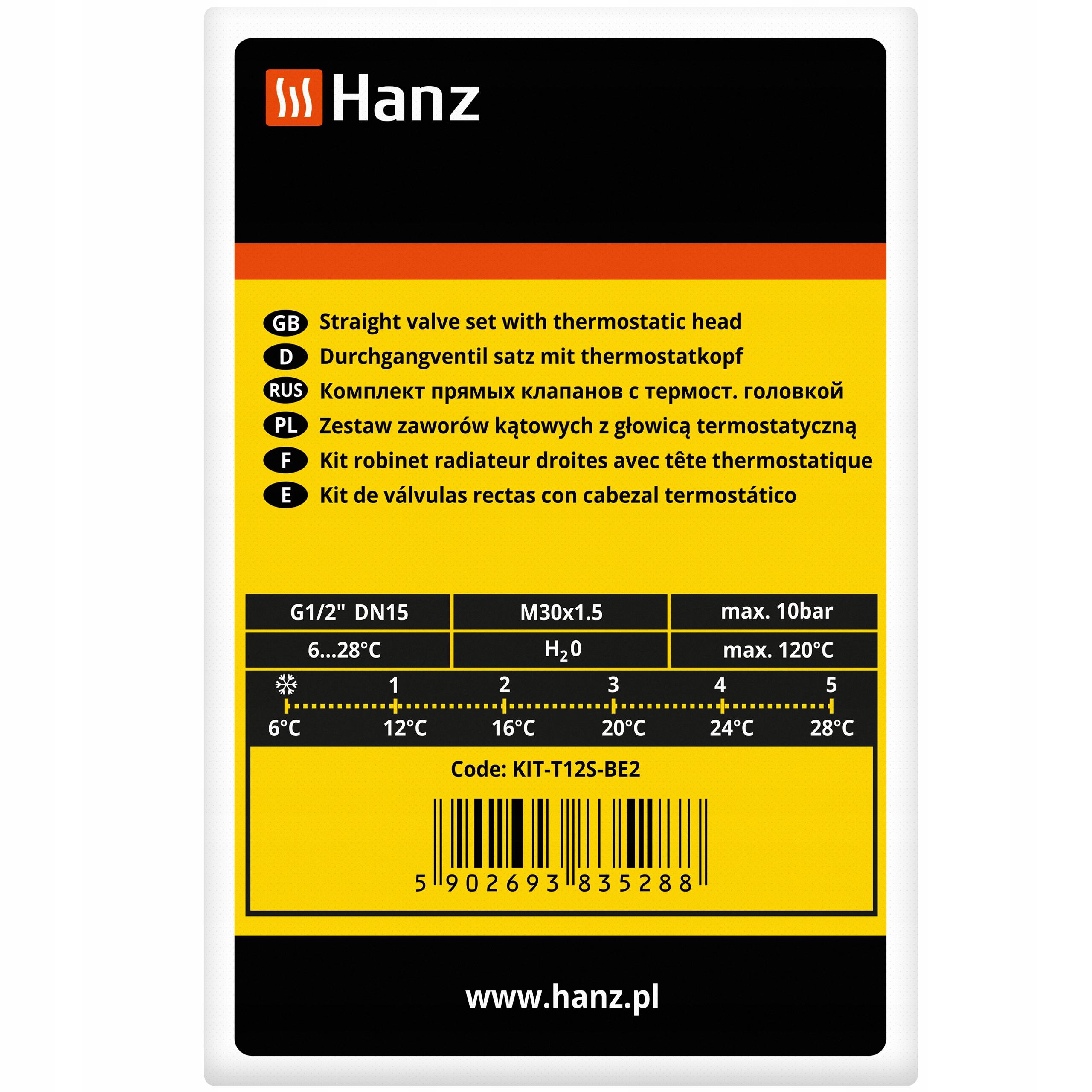 Zestaw termostatyczny prosty czarny 1/2" z głowicą No: KIT-T12S-BE2