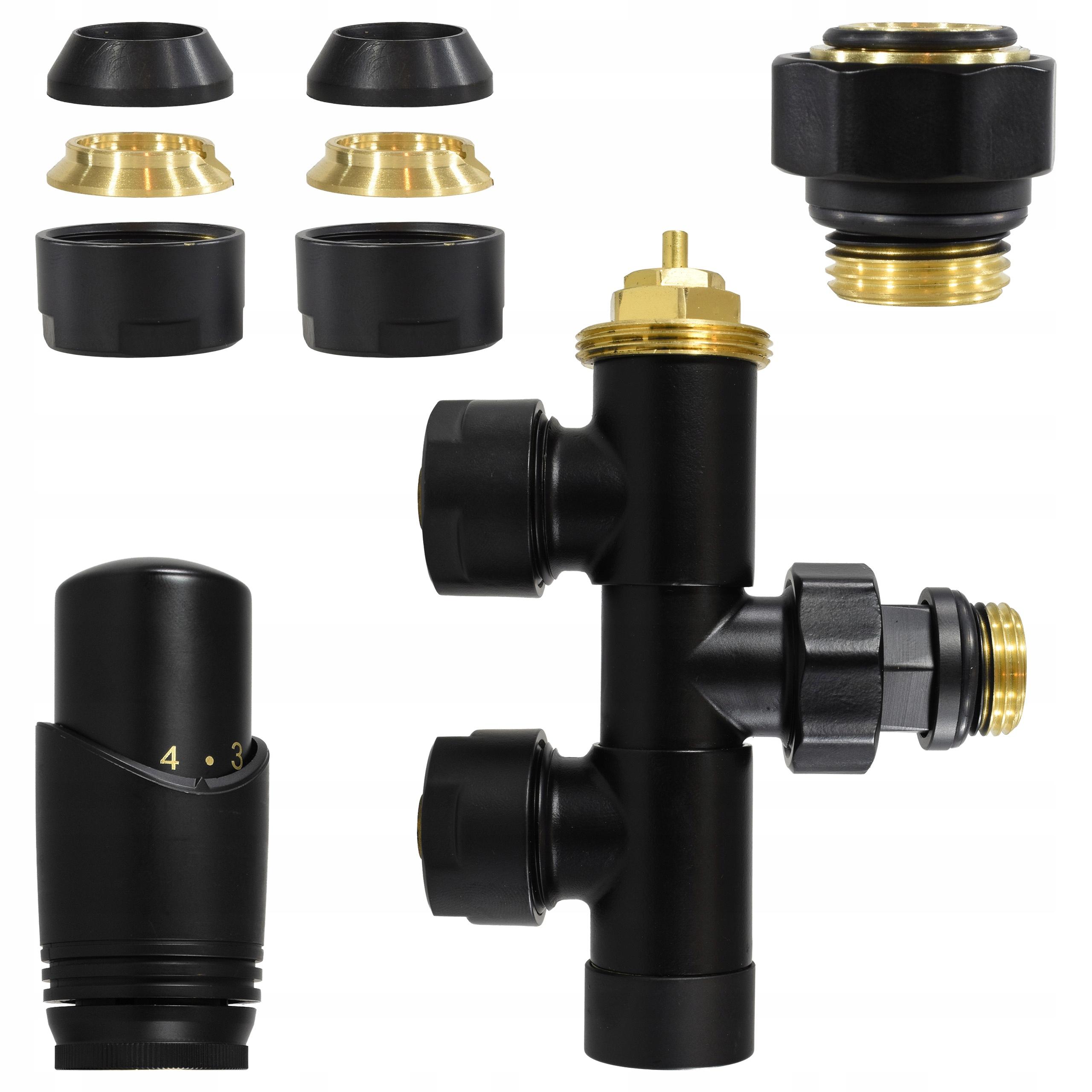 Zawór termostatyczny jednootworowy czarny mat z głowicą uniwersalny